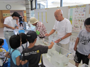 秋には、近くの新川で、クリーン活動とともに、いろいろな生き物を採取し観察会を実施しています。同時に間伐材等を利用してクラフト作りなども開催しています。